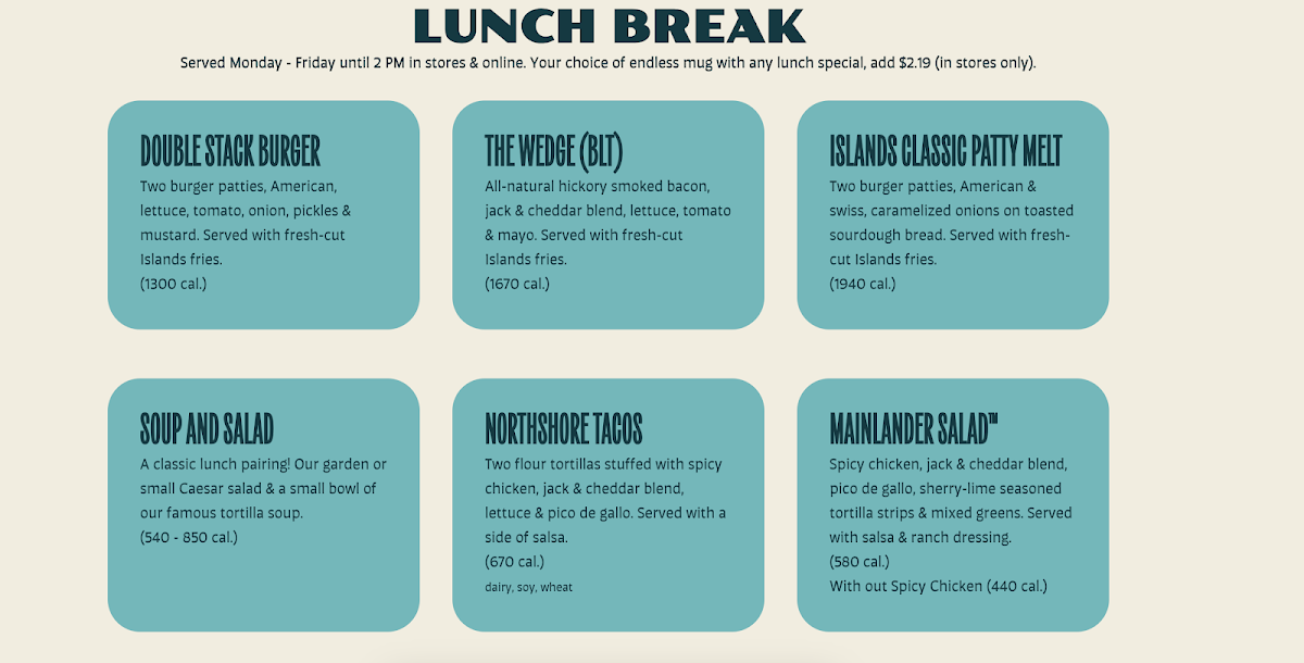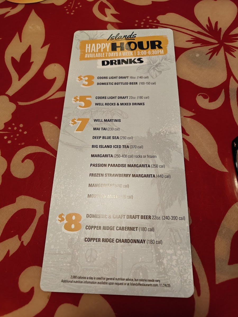 The Islands Restaurant Riverside Menu offers a delightful mix of tropical-inspired dishes perfect for any occasion. Nestled in the heart of Riverside at 3645 Central Ave, this spot is a haven for anyone craving bold flavors and a laid-back dining experience. From fresh salads to mouthwatering burgers, and grilled specialties, there’s something for everyone. Start off with their signature Island Favorites like the Hawaiian BBQ Ribs or the Island Fish Tacos - each dish packed with vibrant flavors and served with a side of aloha. Don’t forget to check out their famous cocktails, which pair beautifully with any meal on the menu. Whether you're here for a casual lunch or a relaxed dinner, Islands Restaurant always delivers a fun, flavorful experience that’ll leave you coming back for more.